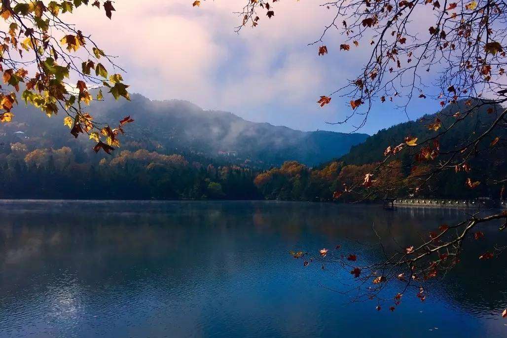 官鵝溝水美。13個(gè)大小不等、形態(tài)各異的湖泊,尤如一串綠色的珍珠鑲嵌在溝內(nèi),湖水清澈透底,隨湖底地貌高低呈不同顏色,那些倒映在湖中的古樹象一條條巨龍臥在湖底。藍(lán)天白云和青山古樹,映入湖中,使天地渾然一體,沒有界限。