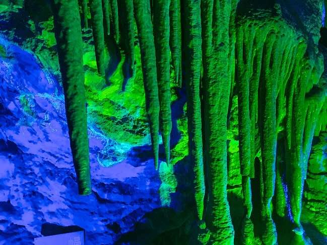 進(jìn)入新洞,首先看到的是一片高高低低的石筍,形態(tài)各異,宛若天上的各路神仙,所以取名為“群仙聚首”。旁邊還棲息著一只天鵝,美麗的身姿,映照在她身后的湖水中,這面湖水也因此而得名為“天鵝湖”。