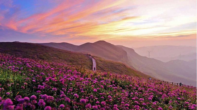 佛光是特殊氣候和地理環(huán)境下形成的光學現(xiàn)象,天氣驟變而造成較大水汽時,光線遇到這些水汽產(chǎn)生折射,才會形成佛光。在中國境內(nèi),僅在峨嵋山、梵凈山等少數(shù)地方出現(xiàn)過類似自然奇觀。烏蒙大草原佛光春、夏、秋三季都會出現(xiàn),出現(xiàn)時間均在下午4點至6點左右,觀看‘草原佛光’,已成為慕名到盤縣觀光旅游的游客的向往。版權所有山東聊城聊之旅國際旅行社有限公司,轉(zhuǎn)載必究!同時,在烏蒙大草原,一臺臺新安裝的風電機組迎風而舞,似在歡迎遠方賓客。傍晚的高山草原,風車飛轉(zhuǎn),霞光四射,金輝盡染。游客可俯瞰綿延峻嶺,仰望旋轉(zhuǎn)風車,體驗高山草原的愜意。