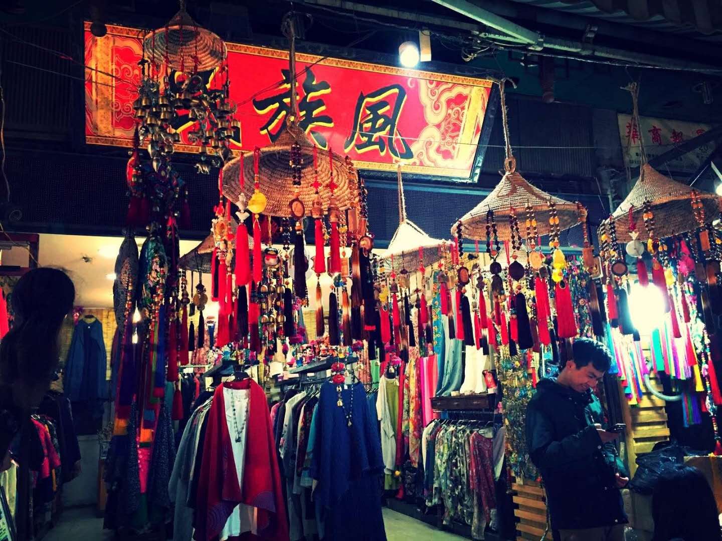 滿為患,連店門口也會擺滿桌椅。烤肉串、涮牛肚的煙火在不甚明亮的燈光下彌漫整條街,熙熙攘攘的人群都是邊逛、邊吃,看到小攤上中意的東西就和攤主還還價。還可以到鼓樓廣場的座椅上歇歇腳,看賣風(fēng)箏的小販把數(shù)十米長的風(fēng)箏一直放到馬路對面的高樓頂上,一切都充滿真實熱鬧的生活熱情。