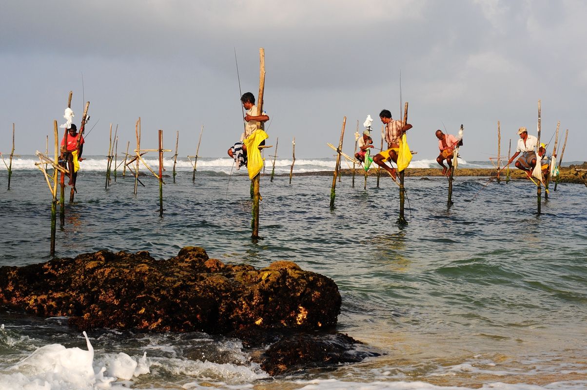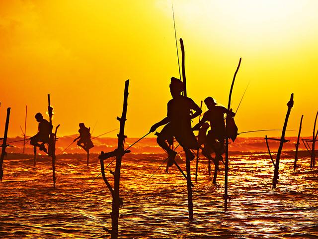 2月正是最好的旱季旅游季節(jié)。自從2009年《孤獨星球旅游者》手冊的封面刊登了一張海邊釣魚者的照片,替代了以往斯里蘭卡馴象人和采茶女的人文標(biāo)識。高蹺釣魚這種當(dāng)?shù)貍鹘y(tǒng)的捕魚方法被謔稱為“世界上最牛釣魚方式”,也成為來到加勒游客必看的一道風(fēng)景。