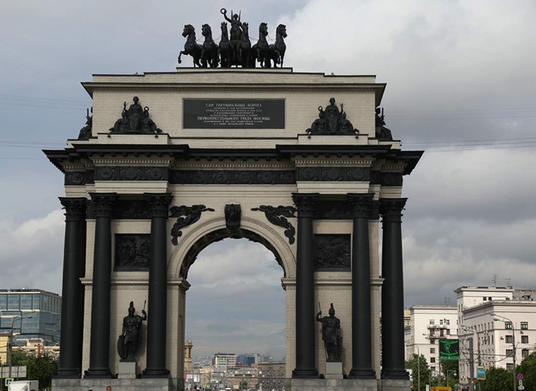 勝利廣場(chǎng)的東面,就是莫斯科的凱旋門,無論從藝術(shù)角度,還是紀(jì)念意義上來講,莫斯科凱旋門與法國(guó)巴黎的凱旋門都不相上下,兩者風(fēng)格各異,卻同是藝術(shù)珍品。莫斯科凱旋門是為紀(jì)念俄國(guó)1812年的衛(wèi)國(guó)戰(zhàn)爭(zhēng)而建。莫斯科凱旋門高達(dá)28米,摒棄了復(fù)雜的裝飾,門身上并沒有華麗的裝飾,只是在門頂立有一尊背有雙翅的勝利女神手執(zhí)月桂花環(huán),乘著六馬戰(zhàn)車向前行駛的雕塑;在女神像的下層,是幾位武士的雕塑,生龍活虎的武士有的手持利劍,有的高舉橄欖枝,還有的手捧月桂花環(huán),每一個(gè)人的表情都生動(dòng)細(xì)致;版權(quán)所有山東聊城聊之旅國(guó)際旅行社有限公司,轉(zhuǎn)載必究!武士雕塑再往下便是底層的深色高柱,高柱之間分列著四尊俄軍士兵的雕塑,士兵表情嚴(yán)肅,身著古時(shí)盔甲,執(zhí)槍持盾,在他們的手指上還刻有“驅(qū)逐法西斯,解放莫斯科”的字樣,氣勢(shì)雄偉,古典大方。
