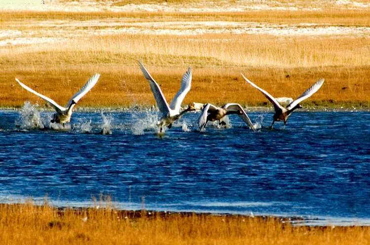 回環(huán)曲折,水量充沛的開(kāi)都河貫穿其中,廣闊的草原上遍布湖沼、淺水灘和孤島,是水禽棲息的理想之地。泉水、溪流和天山雪水匯入到湖中,水豐草茂,食料豐足,氣候涼爽而濕潤(rùn),適合天鵝生長(zhǎng),每當(dāng)春天來(lái)到,冰雪消融,萬(wàn)物復(fù)蘇,大批天鵝從印度和非洲南部成群結(jié)隊(duì)的飛越叢山峻嶺,來(lái)到天鵝湖棲息繁衍,在和煦的陽(yáng)光下,湖水、天光、云影、天鵝,構(gòu)成一幅“片水無(wú)痕浸碧天,山容水態(tài)自成圖”的畫(huà)卷。版權(quán)所有山東聊城聊之旅國(guó)際旅行社有限公司,轉(zhuǎn)載必究!9月以后又?jǐn)y雛南飛。所以6月天鵝孵育時(shí)節(jié),是觀賞天鵝的最佳時(shí)節(jié),在兩個(gè)多月的時(shí)間里,成千上萬(wàn)的大天鵝、疣鼻天鵝、小天鵝以及70多種珍禽飛翔于藍(lán)天碧草之間,嬉戲于湖沼的碧水之中,恰如一幅絕妙的畫(huà)卷,故而有“天鵝湖”的美稱(chēng)。當(dāng)?shù)孛晒抛迥撩癜烟禊Z視為“貞潔之鳥(niǎo)”、“美麗的天使”、“吉祥的象征”。天鵝湖鳥(niǎo)類(lèi)資源十分豐富,水禽種類(lèi)多,數(shù)量大。據(jù)考察,有大天鵝、小天鵝、疣鼻天鵝一萬(wàn)余只,還有灰雁、斑頭雁、白頭鷂、燕鷗、雕、禿鷲等近10余種珍稀鳥(niǎo)類(lèi),屬?lài)?guó)家一二級(jí)保護(hù)動(dòng)物。