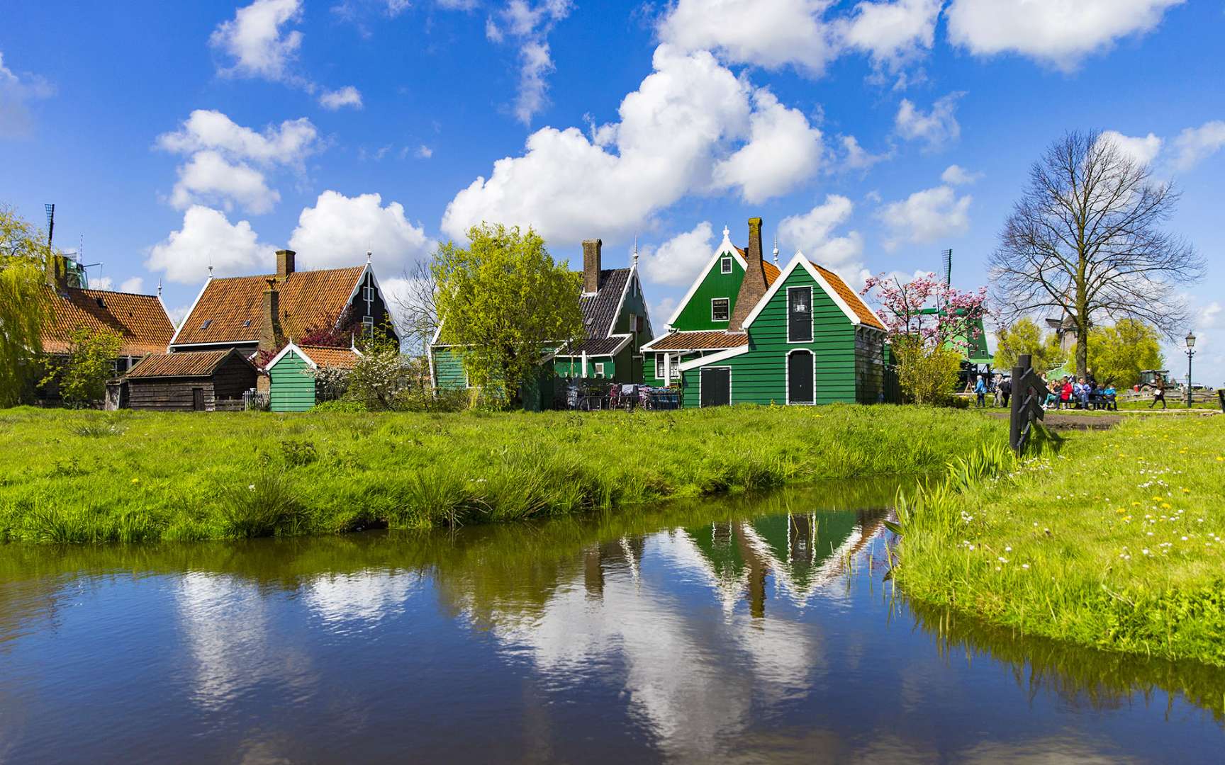 荷蘭桑斯安斯風(fēng)車村(Zaanse Schans)是位于阿姆斯特丹北方15公里。古老的建筑生動(dòng)描繪了17、18世紀(jì)的荷蘭生活。真實(shí)的房子,古老的造船廠,制作木鞋的表演,還有風(fēng)車,是有居民居住、開(kāi)放式的保留區(qū)和博物館。