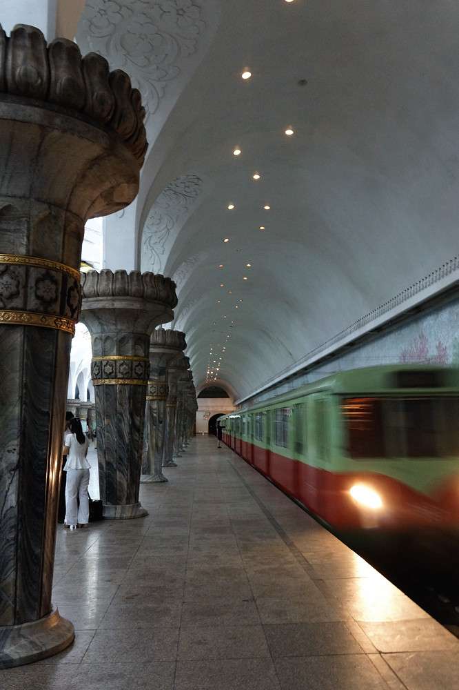 平壤地鐵是在中國(guó)的援助下于1968年開(kāi)始興建的,當(dāng)年北京的地鐵也剛開(kāi)始動(dòng)工。1973年剛通車(chē)時(shí),地鐵采用的部分車(chē)廂還是中國(guó)長(zhǎng)春客車(chē)廠的產(chǎn)品。可以說(shuō),平壤地鐵是中朝友誼的又一個(gè)見(jiàn)證。現(xiàn)在,平壤市內(nèi)一共有兩條地鐵,呈十字交叉形,貫通全城東西南北,總長(zhǎng)40公里,日均客流量達(dá)到40萬(wàn)人次。