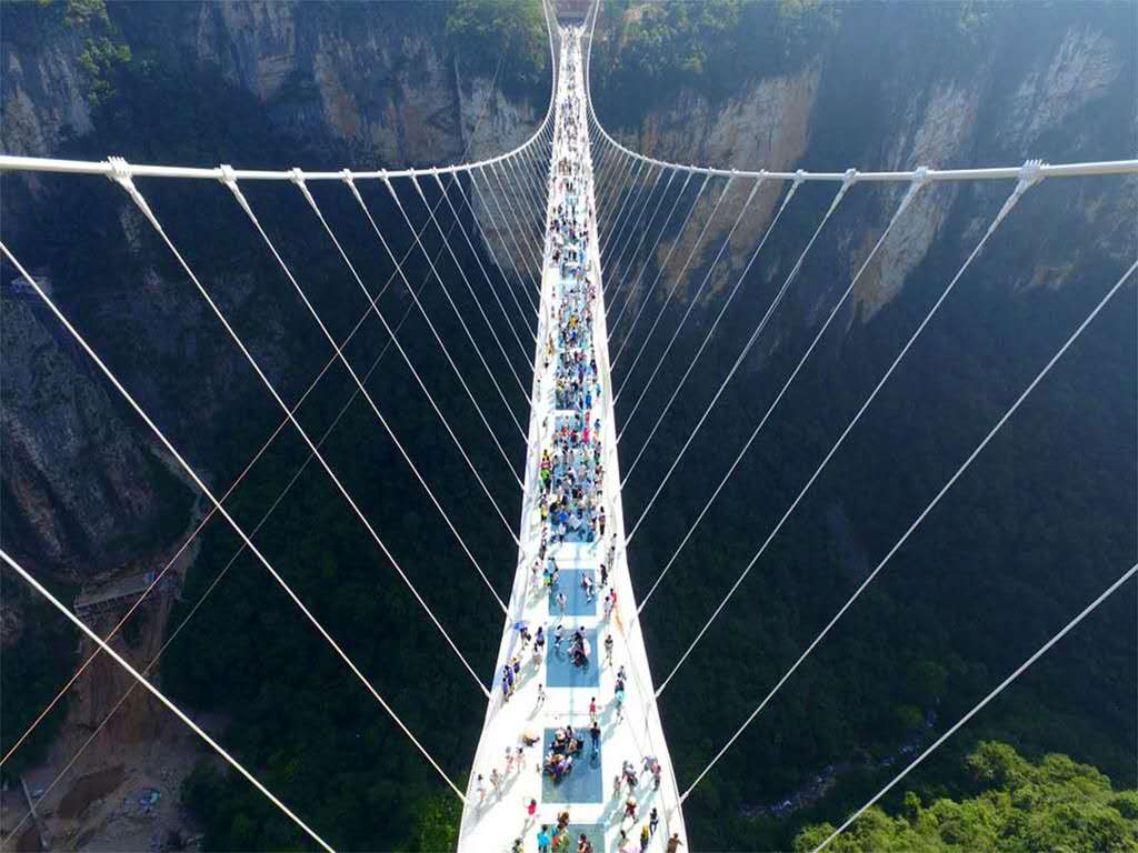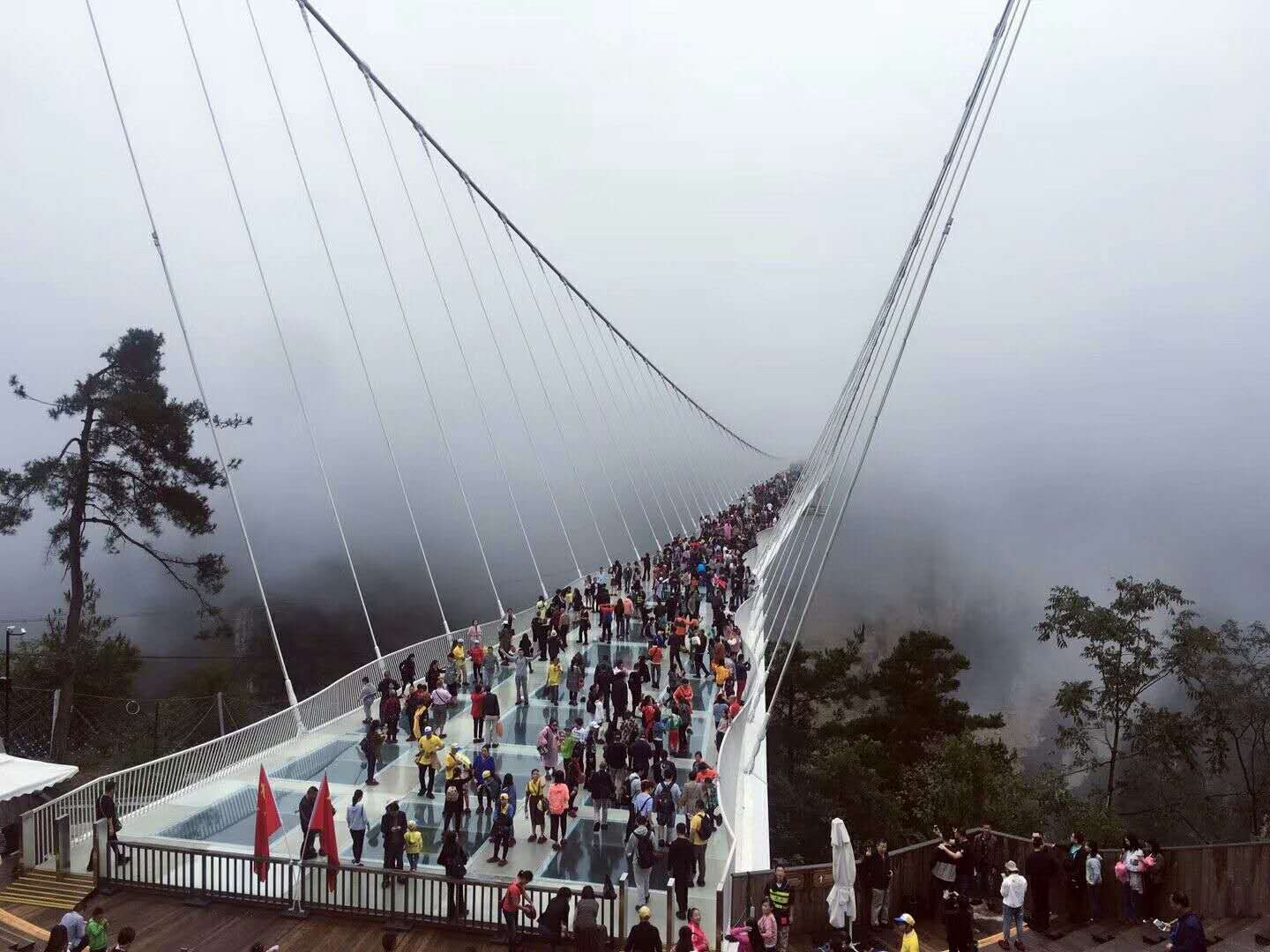2016年5月6日,張家界大峽谷玻璃橋改名云天渡; 6月25日,云天渡橋面接受錘砸檢驗(yàn); 8月20日,云天渡正式對外開放、投入使用。