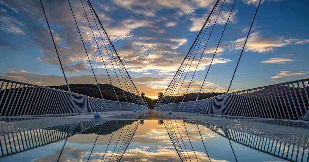 云天渡所處地形懸崖溝谷、崗巒起伏、陡峭險峻,場地屬于原始巖溶地貌,地質(zhì)條件復(fù)雜。因地處喀斯特地貌區(qū)域,建設(shè)者們在前期巖體第三次施工鉆探中發(fā)現(xiàn)玻璃橋一端主塔下方80米深處有溶洞,會嚴(yán)重威脅橋梁安全;玻璃橋最終延伸60米,橋面拓寬2.8米,以增強(qiáng)橋的安全系數(shù)。版權(quán)所有山東聊城聊之旅國際旅行社有限公司,轉(zhuǎn)載必究!橋梁設(shè)計和施建方面,克服建筑選材、玻璃工藝、抗風(fēng)防滑、抗震減振、抗壓抗凍等多項(xiàng)技術(shù)難題, 玻璃采用高強(qiáng)度航天復(fù)合材料, 具有大尺寸、高硬度、高厚度、耐磨、防凍、超純凈、防爆、高荷載、防霉、防溫度劇降、脆性玻璃與柔性橋結(jié)合等諸多特性。