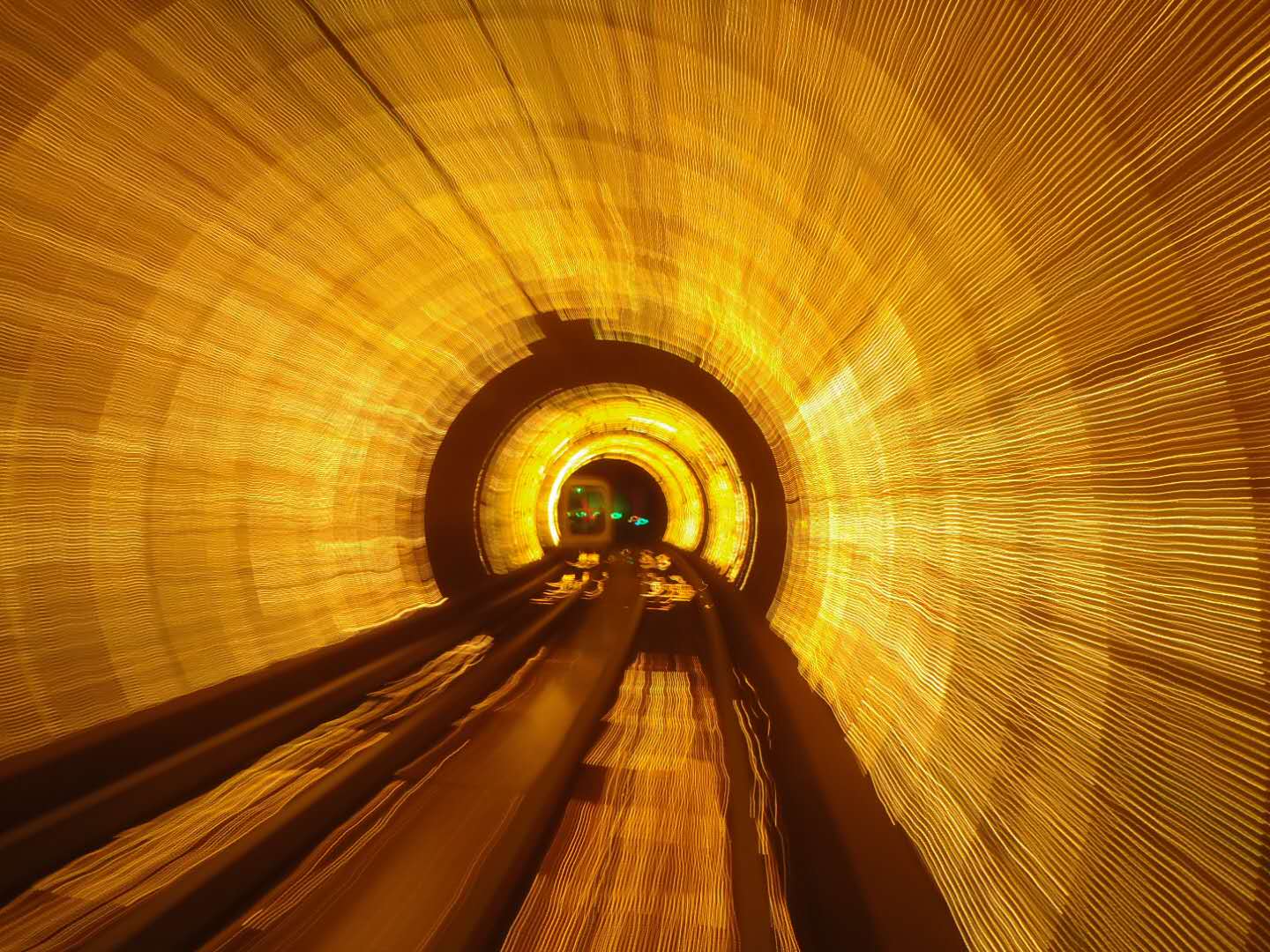 外灘觀光隧道是融交通與旅游功能為一體的又一標(biāo)志性景觀工程,它利用空間,運(yùn)用現(xiàn)代高科技手段,在隧道內(nèi)演示反映人物、歷史、文化、科技、風(fēng)景等各種圖案、景象及背景音樂,使過江過程帶有極強(qiáng)的趣味性、娛樂性和刺激性,給游客留下美好的記憶。連接浦江兩岸的圓形隧道內(nèi)徑6.67米,隧道全長646.7米,采用目前國際上最先進(jìn)的連續(xù)式軌道自動車廂運(yùn)輸系統(tǒng),整個(gè)過江時(shí)間在2.5-5分鐘,每小時(shí)最大輸送量為5000人次。