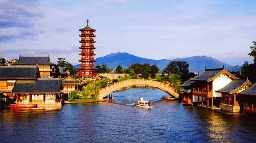 山環(huán)水繞的木龍湖,整個景區(qū)周邊自然景觀優(yōu)美,不僅有得天獨厚的漓江、疊彩山優(yōu)美的自然生態(tài)環(huán)境,還有歷史久遠(yuǎn)的古宋城等眾多歷史文化遺跡,歷史文化遺跡豐富。所以,在以宋城歷史文化主題公園為主的木龍湖景區(qū)總體設(shè)計方案時,通過對現(xiàn)狀環(huán)境、歷史文化背景做全方位深入調(diào)分析和在進(jìn)行多次學(xué)習(xí)考察的基礎(chǔ)上,聽取了各方意見,不斷完善、修改、深化設(shè)計方案,確定木龍湖景區(qū)在加強(qiáng)對歷史文化遺跡和自然生態(tài)環(huán)境保護(hù)的基礎(chǔ)上,版權(quán)所有山東聊城聊之旅國際旅行社有限公司,轉(zhuǎn)載必究!有限度地開發(fā)利用風(fēng)景文化旅游資源,達(dá)到人與自然的共生的基調(diào)。木龍湖景區(qū)總體布局以中國傳統(tǒng)造園思想為指導(dǎo),結(jié)合建筑范圍內(nèi)地形地址條件,以史料、《清明上河圖》等宋畫為基本素材,就形成了宋代建筑特征。木龍湖景區(qū)建設(shè)突出了自然山水與歷史文化相融合的特點,在木龍湖北側(cè)依托宋代東鎮(zhèn)門、宋城墻遺址等歷史人文景觀,建設(shè)包括宋街、半邊街、古宋城、木龍塔、木龍夜泊、淺橋魚影、聽荷軒等具有宋代建筑氣息的古建筑群落的景點,木龍塔是以上海宋代的龍華塔為藍(lán)本建造的,高45米。在木龍湖南側(cè)與疊彩山之間建筑以觀賞林地、草地、溪流、瀑布為主的生態(tài)景觀帶。