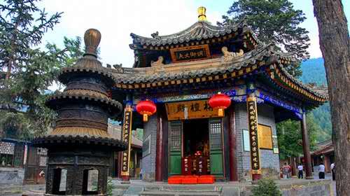 占地三千平方米,計有殿堂僧舍二十余間。過牌樓,進山門,見院內(nèi)的山門背后立有石碑兩塊:一塊立于明萬歷二十年仲秋,上書“五臺山重建佛頂庵碑記”;另一塊立于清康照歲次辛未仲秋,上書“青峰頂造像建亭記”。看來,黛螺頂又名青峰頂,佛頂庵是黛螺頂寺宇的另一種稱法。寺內(nèi)的第一座殿為站壇殿,殿座六角臺基,上部是六角重檐攢尖頂。作為殿建,在五臺山寺廟群中別具一格。殿內(nèi)主供站壇佛,釋迦牟尼佛不是常見的趺坐形樣,而是站立于佛壇之上。又站壇佛亦稱旃檀佛,因原來的站佛是用旃檀木雕成,故名。第二座大殿為五文殊殿,正面三間,側(cè)面兩間,外加半間寬的四面出廊,單檐歇山頂。殿內(nèi)供的就是集五座臺頂五種文殊法像于一室的五文殊,正中殿壇上,中間供中臺孺童文殊,左側(cè)供北臺無垢文殊,右側(cè)供南臺智慧文殊,左側(cè)殿壇供東臺聰明文殊,右側(cè)殿壇供西臺獅子吼文殊。版權所有山東聊城聊之旅國際旅行社有限公司,轉(zhuǎn)載必究!自從黛螺頂供五文殊以來,小朝臺的盛譽聞名遐邇。大殿前立的石碑,就是清乾隆御制碑,石碑背面的乾隆親筆題詩,其字跡的結(jié)構(gòu)豐滿圓潤,筆法剛勁流暢,堪稱書法藝術珍品。第三座后殿面闊五間,懸山_頂,殿階臺下長有一松一柏,松在北端,柏在南端,圍粗均在九尺左右,即是乾隆詩中所稱的“階下千年不老松”。松柏樹高大直立,無有彎曲,望去有如戟指藍天,為寺宇生色不少。