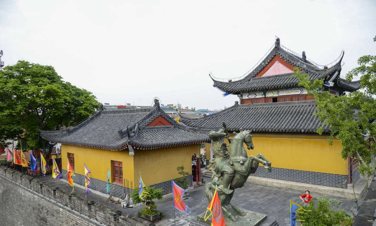 已建成的關(guān)羽祠為第一期工程,由山門(mén)、主殿、祥和殿(東配殿)、誠(chéng)信殿(西配殿)四大建筑構(gòu)成。主殿內(nèi)塑關(guān)羽坐像,左邊塑關(guān)羽的長(zhǎng)子關(guān)平像,右邊塑關(guān)羽的次子關(guān)興像,四周照壁繪《三國(guó)演義》壁畫(huà),主殿二樓陳列關(guān)公圣跡沙盤(pán)。版權(quán)所有山東聊城聊之旅國(guó)際旅行社有限公司,轉(zhuǎn)載必究!祥和殿內(nèi)塑關(guān)羽一家四代九口的全家福像。誠(chéng)信殿內(nèi)塑劉備、關(guān)羽、張飛、趙云、諸葛亮五人的頭像,神態(tài)各異,栩栩如生。