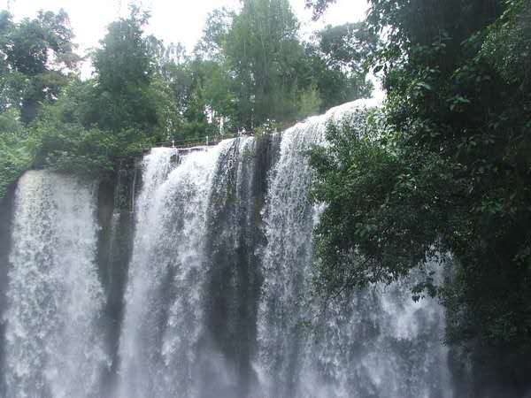 在波列昂通寺西南有一著名瀑布,叫荔枝山瀑布,位于暹粒河上游的一個開闊山谷,山谷左右有茂林修竹夾峙。水簾似的大瀑布沿石壁傾瀉而下,勢如萬馬奔騰。版權所有山東聊城聊之旅國際旅行社有限公司,轉(zhuǎn)載必究!瀑布分為兩節(jié),第一節(jié)約 25 米高,沿著石壁傾注在一塊約1000 平方米的平臺上。瀑水流過平臺,到了一垛落差約 30 米高的絕崖峭壁上部,從這里再沖出峭崖,砰然跌落,又形成寬達 100 米的瀑布,響聲雷鳴,水花四濺,景色極為壯觀。平臺上分布著 16 個深淺不同的天然石洞,洞底有一層薄薄的黃沙,游人可以在洞中用瀑水洗澡。