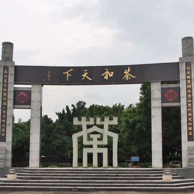 因而頗有意思。在牌樓兩旁寫(xiě)著“清和”、“精儉”、背后是“誠(chéng)敬”、“美倫”這八個(gè)大字是代表著茶道精神,也是茶博物院的景區(qū)質(zhì)量口號(hào)。在牌樓的左側(cè),有一座5米高、15米長(zhǎng)的照壁,正面浮雕刻有五位對(duì)中國(guó)茶文化做出重大貢獻(xiàn)的人物:神農(nóng)、陸羽、蘇軾、蔡襄、乾隆。