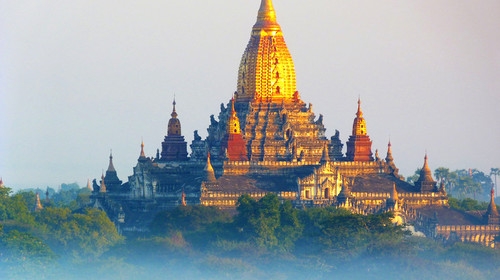 蒲甘王朝是由阿奴律陀國(guó)王(King Anawrahta,1044年至1077年在位)于1044年建立,為緬甸第一個(gè)統(tǒng)一的帝國(guó),以上座部佛教為國(guó)教。阿諾耶塔國(guó)王相繼征服撣族和孟族,也不斷擴(kuò)展領(lǐng)土。在阿朗西都國(guó)王(King Alaungsithu,1111年至1167年在位)掌政時(shí),上座部佛教逐漸成為主流,并在13世紀(jì)初期達(dá)到頂盛。當(dāng)時(shí)建造的3000余座寺廟尚有100座保存至今。1287年蒙古統(tǒng)治者忽必烈(Kublai Khan)率領(lǐng)元朝軍隊(duì)大肆入侵(元緬戰(zhàn)爭(zhēng))而使得蒲甘王朝失去了獨(dú)立性,不久后滅亡。