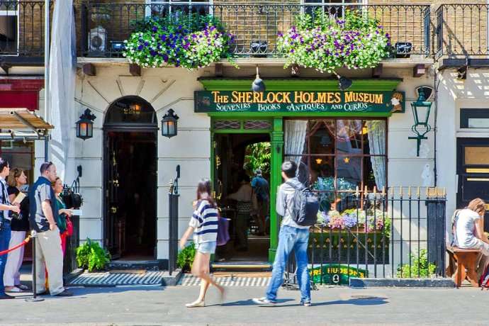 貝克街221B號(及239號)是于1990年成立的福爾摩斯博物館(Sherlock Holmes Museum),館內(nèi)的布置擺設(shè)都以小說中提及的情節(jié)為佐,更增添福爾摩斯舊居的真實性。這是個精巧迷人的觀光場所,福爾摩斯與華生醫(yī)生的辦公室都依據(jù)故事內(nèi)容重新裝潢。你可以坐在一樓書房的爐子旁,試戴福爾摩斯的帽子,并拿著他的煙斗,模仿他的姿勢。再走一點,就會看到真正的221B號,它現(xiàn)在是國家教堂,這里每周都會收到從世界各地的福爾摩斯迷寄來的一百多封信。親自造訪教堂的人們,可以免費(fèi)拿到福爾摩斯簡冊與明信片。