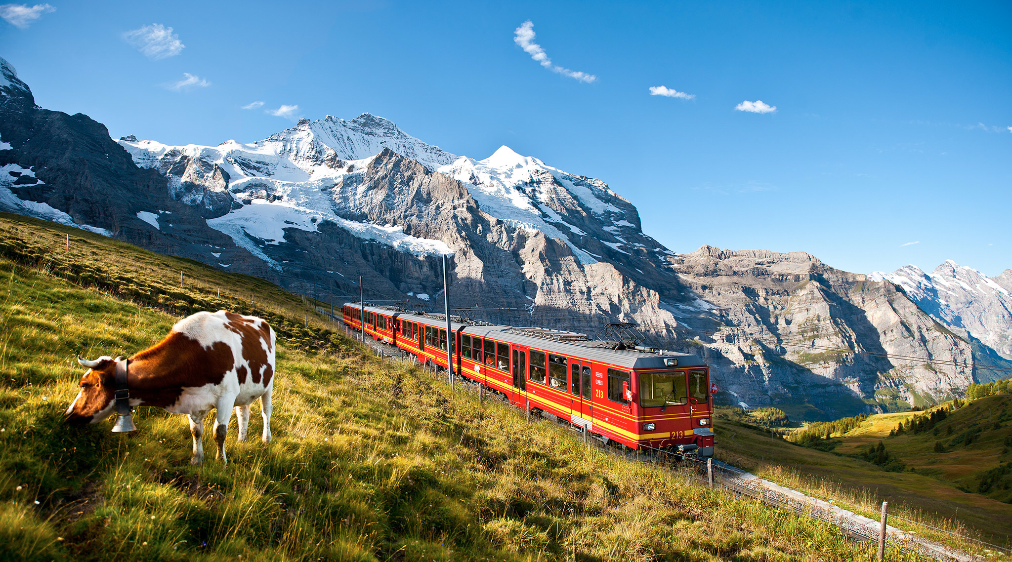 少女峰齒軌火車,又叫云霄火車,因為它最終抵達(dá)的地方位居海拔3454米的少女峰站是全歐洲海拔最高的火車站,能不斷推陳出新向世界推出設(shè)計獨到、款式多樣的手表、軍刀等產(chǎn)品的瑞士人都不是因循守舊的,少女峰鐵軌上先人的勇氣尚存,近百年后的1996年,瑞士人又在此大膽啟用了歐洲最高的觀景臺及瑞士最快速的升降機(jī)(110米垂直高度,25秒鐘抵達(dá))。正是由于有了海拔3571米高、可360度飽覽景色的斯芬克斯觀景臺,站在號稱“歐洲屋脊”的少女峰上,阿爾卑斯山山脈中最讓人驚心動魄的全景圖就可以盡收眼底,一覽無余:阿爾卑斯山中最長的冰河,長23.6公里,覆蓋面積達(dá)117平方公里的雄奇的阿來奇冰河。天氣晴朗的日子,甚至能看到遠(yuǎn)在法國境內(nèi)的Vosges雪山及遠(yuǎn)在德國境內(nèi)的黑森林。