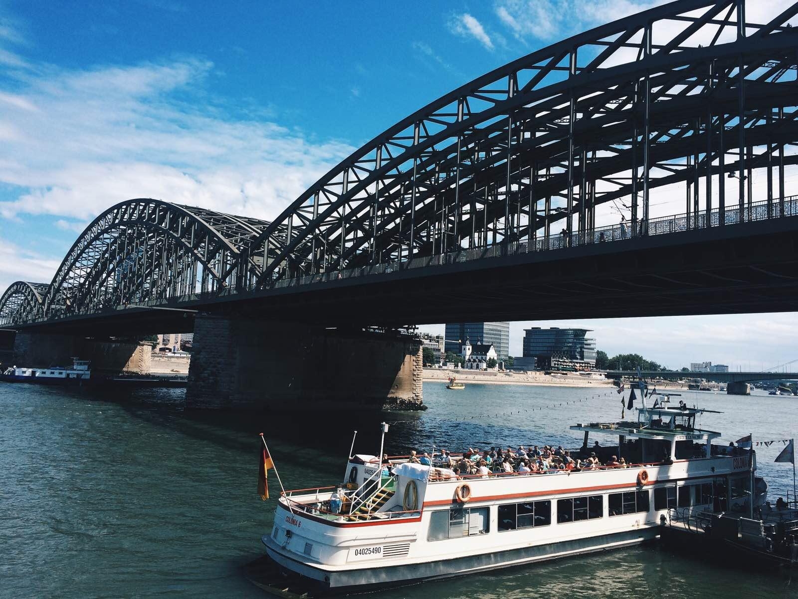 早在1859年在這個(gè)位置上就已經(jīng)建起了一座有兩股鐵路的大教堂橋,但是到20世紀(jì)初這座橋無法承受不斷提高的交通量。因此從1907年至1911年它被霍亨索倫橋取代。版權(quán)所有山東聊城聊之旅國際旅行社有限公司,轉(zhuǎn)載必究!這座橋由三座平行的橋組成,每座橋上有三個(gè)鋼鐵桁架拱,橋上共有四顧鐵路和一條公路。雖然在造大教堂橋的時(shí)候就已經(jīng)有人批評(píng)橋和火車站的位置,但是霍亨索倫橋還是依照其前身的走向,直接位于大教堂的軸心線上。