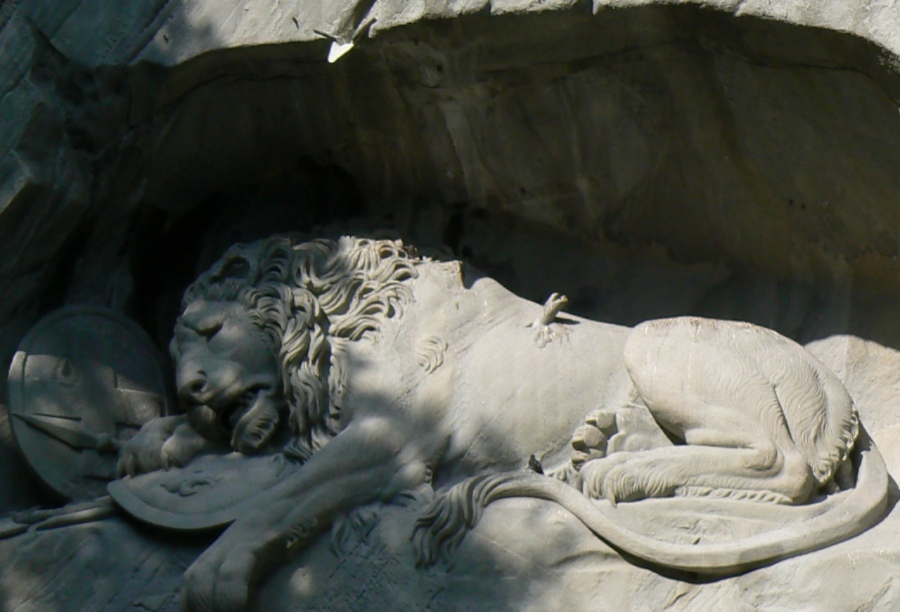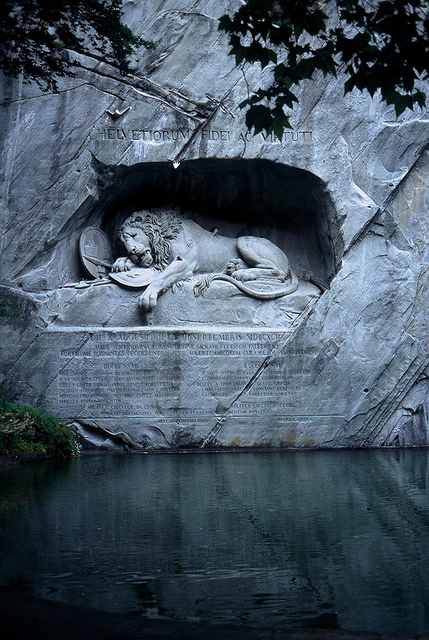 獅子紀(jì)念碑(Lion Monument)是琉森(盧塞恩)數(shù)一數(shù)二的雕刻作品,一支箭深深地插進(jìn)了瀕臨死亡的雄獅背上,獅子面露痛苦的神情,前爪按盾牌和長矛,盾牌上有瑞士國徽。