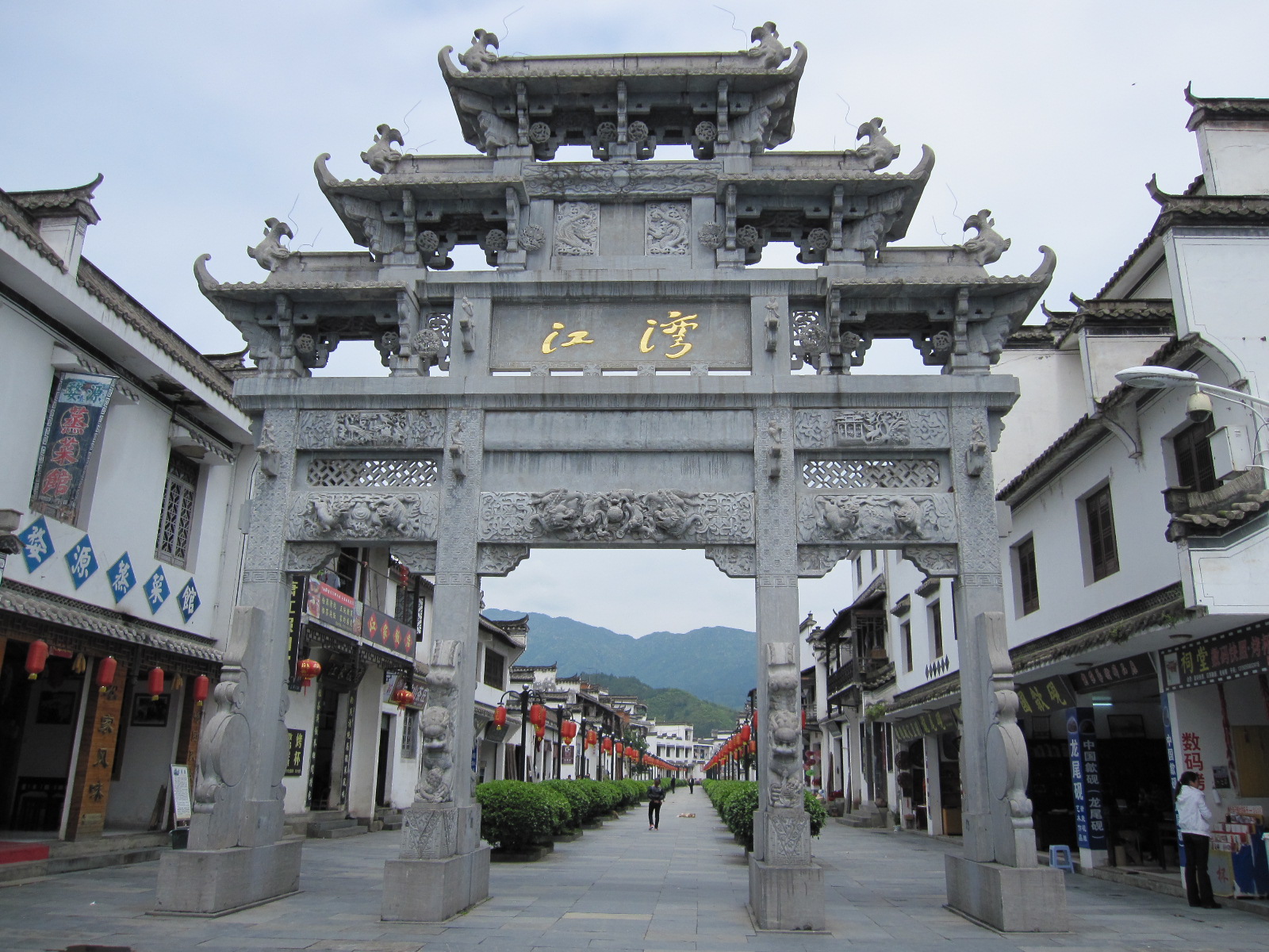 龍脈――婺源,猶如水中靜女。其文化性格緣自“徽州,民間屬號“龍” 江灣,國家AAAA級旅游區(qū),為中國最美鄉(xiāng)村婺源的一顆璀璨明珠。 千年古鎮(zhèn)江灣,鐘靈毓秀,文風(fēng)熾盛。自宋至清,這里蘊育了狀元、進士、與仕宦38人;走出明代抗倭名將江一麟、宮廷太醫(yī)江一道、清代樸學(xué)大師江永、民國教育江謙等賢仕和一代偉人江澤民。又有文人學(xué)士19人,傳世著作92部,其中15部161卷列入《四庫全書》。 千年古鎮(zhèn)江灣,嵌于錦峰繡嶺、清溪碧河之中。聚落北部后龍山逶迤東去,山上林木蔥郁,其“仙人橋”是古人實踐風(fēng)水理論的杰出典范;南側(cè)梨園河呈太極圖:“S”,由東而西蜿蜒流過。這里既尚好保存御史府、中憲第等明清官 邸,又有滕家老屋、培心堂等徽派商宅,還有江永講學(xué)的受經(jīng)堂,東和、南關(guān)、西安、北鑰四座古門亭,岳武穆的岳飛橋,明代劍泉井等。