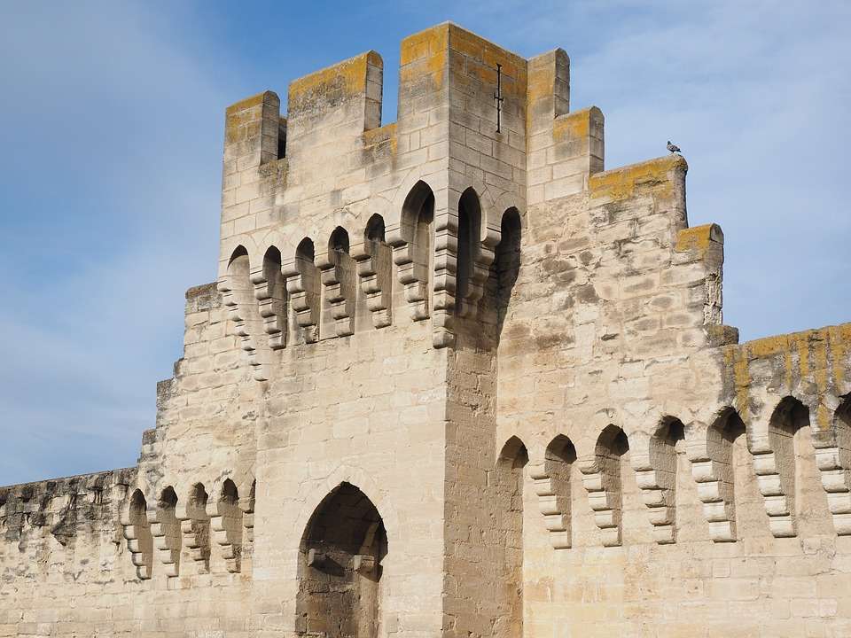 教皇宮(Palais des Papes) 由西蒙德 . 馬蒂尼和馬泰奧.焦瓦內(nèi)蒂設(shè)計(jì)裝飾的羅馬教主宮,看上去是非常古樸的城堡,它俯視著這座城市,環(huán)城的城墻和 12 世紀(jì)遺留下來的橫跨羅納河的橋梁。這座突出的哥特式建筑下面的廣場(chǎng)上,小宮殿和圣母院教士的羅馬主教堂構(gòu)成了一組特殊的紀(jì)念碑,他們顯示了阿維尼翁在 14 世紀(jì)基督化的歐洲所扮演的突出角色。