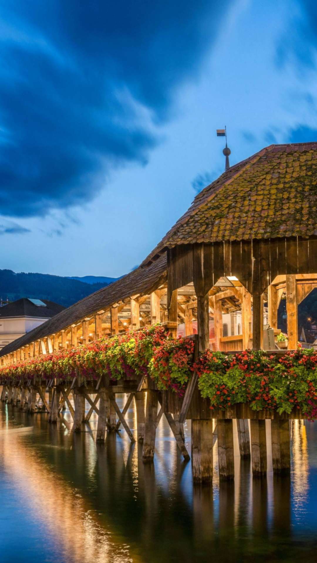 瑞士琉森最負(fù)盛名便是卡佩爾廊橋Chapel Bridge(Kapellbrücke)又叫教堂橋,這是盧塞恩的標(biāo)志,始建于1333年,也是歐洲最古老的有頂木橋,橋的橫眉上繪有120幅宗教歷史油畫,沿途還可欣賞描述當(dāng)年黑死病流行景象的畫作。