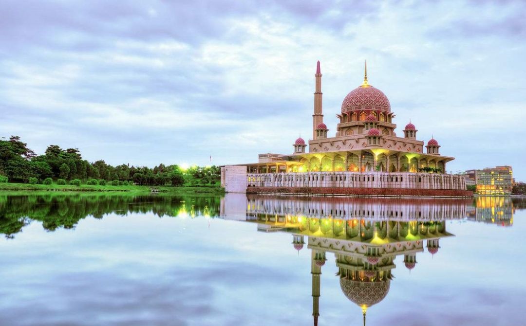 粉紅清真寺(Masjid Putra),仿造摩洛哥卡薩布蘭卡的哈桑清真寺而建,坐落在馬來西亞的新行政中心——太子城(Putrajaya,官方譯名:布城),占地面積5.5公頃,耗資1000萬美元,是馬來西亞最大的清真寺,同時也是東南亞地區(qū)最大的水上清真寺。