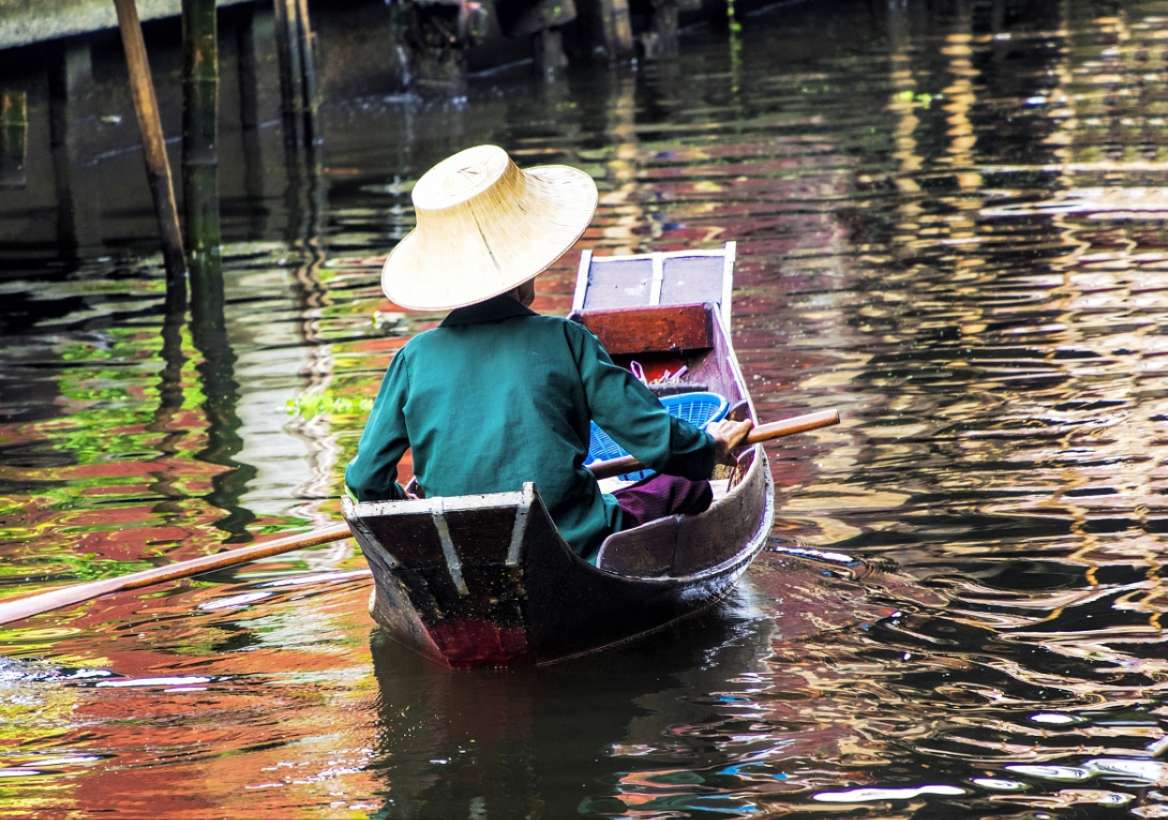 每天早上約7點(diǎn)到9點(diǎn),是當(dāng)?shù)厝私灰鬃铑l繁的時候,會有一艘接著一艘的小船從附近駛來,賣時蔬水果、干貨、小吃、鍋碗器皿、草帽等,在船上煮米粉、剖椰子都是輕而易舉的事情。店家各持一艘船,景象實在壯觀。約莫10點(diǎn)左右,除了小販的船外,更多了載觀光客的船,有時河道可能也會被擠得水泄不通,出現(xiàn)難得的「塞船」景象,不過這里有水上警察吹哨音指揮,紓解交通,很快就能讓河面再度活絡(luò)起來。