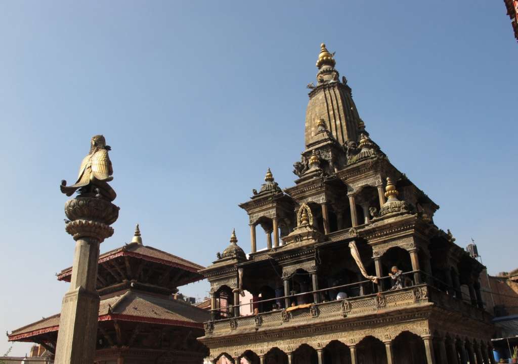 傳說(shuō)這座廟的名字就是尼泊爾名字的由來(lái),而這座廟宇也是杜巴廣場(chǎng)上最古老的建筑。在尼泊爾語(yǔ)中,加塔曼達(dá)表示“木頭建造的集會(huì)建筑”,所以這座廟又叫“獨(dú)木廟”。顧名思義,這座建筑建造初期的用途是供人們休息集會(huì)之用,后來(lái)改為廟宇,供奉哥拉納神。這座廟宇也非常熱鬧,每天一早,小販們就在廟門(mén)口擺滿(mǎn)了鮮花,出售給進(jìn)廟祭祀的人們。