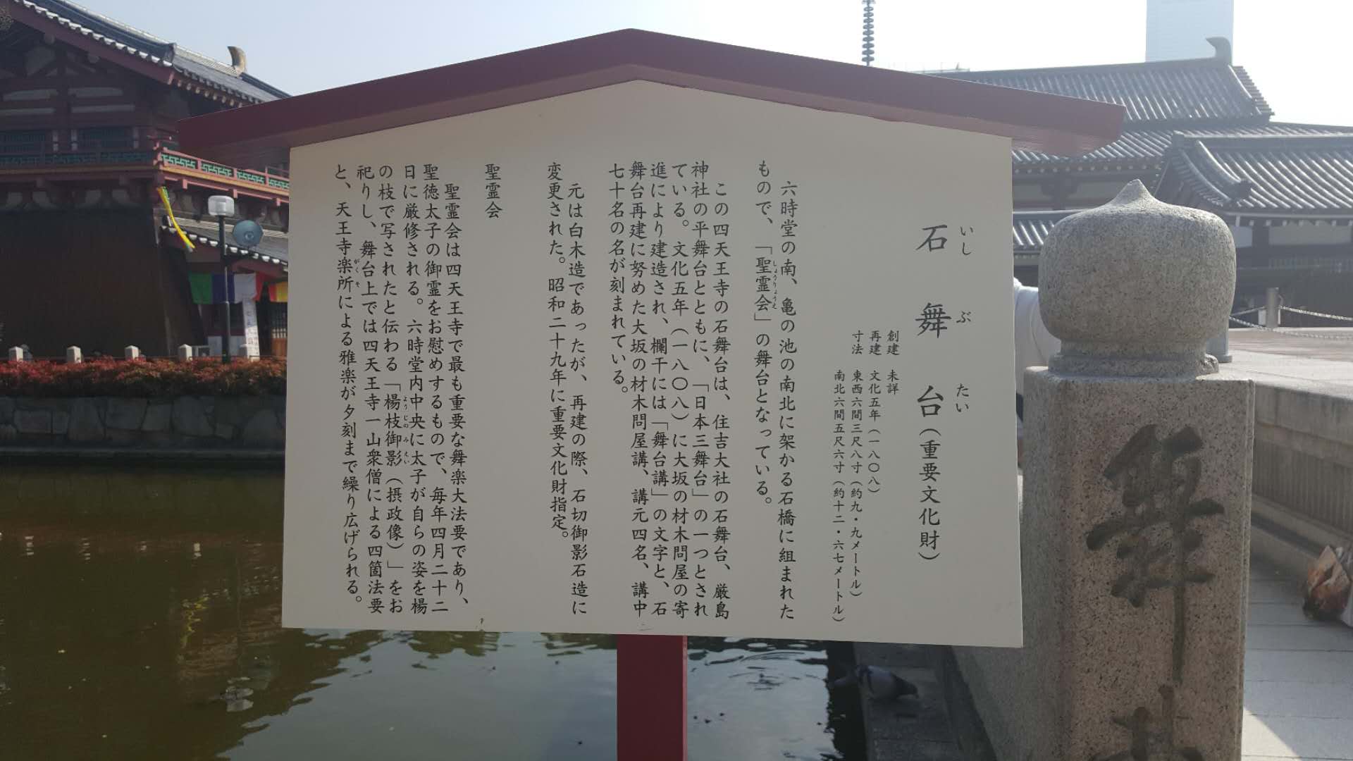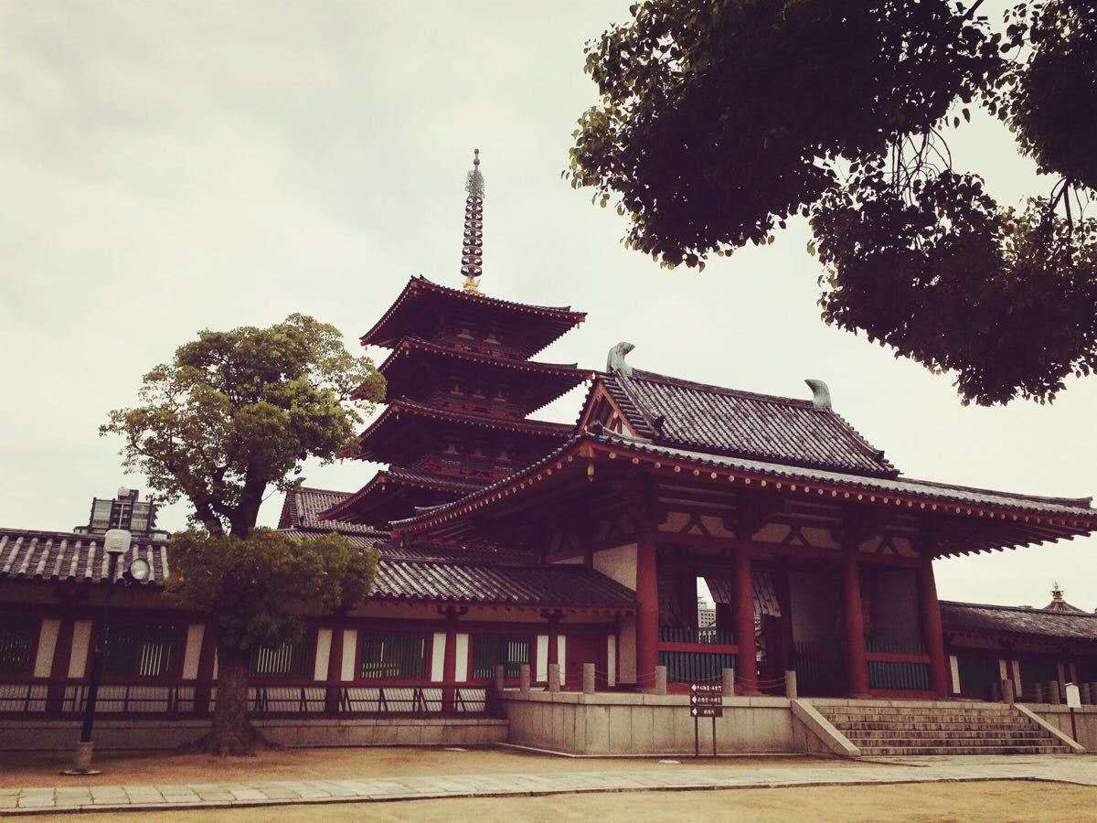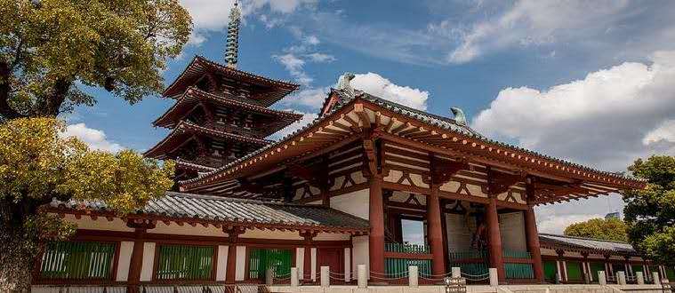 四天王寺是593年由圣德太子所建立的日本佛教最早的寺院,因此它也是日本最古老的官家寺院。它不僅僅作為佛界守護(hù)、鎮(zhèn)護(hù)國(guó)家的寺院而成為政治外交的中樞,而且還是美術(shù)工藝產(chǎn)業(yè)等日本文化的發(fā)源地。以后將中門、五重塔、金堂、講堂等呈一條直線排列、外部則由回廊環(huán)繞的建筑模式稱為“四天王寺式”,其模式來源應(yīng)為中國(guó)和朝鮮半島。雖然殿堂、寶塔、寺院多次遭遇戰(zhàn)炎和天災(zāi)和毀壞,但每次都得以重建,所以至今仍保持著最初建造時(shí)的飛鳥時(shí)代的雄姿,充分體現(xiàn)了這座寺廟的悠久歷史和它在大阪人心中的地位。