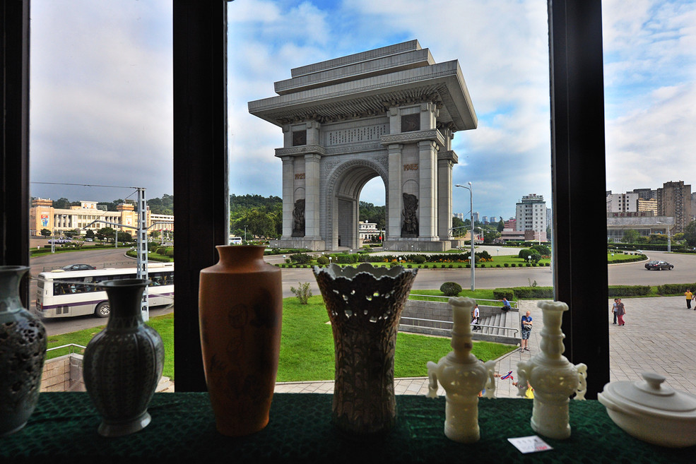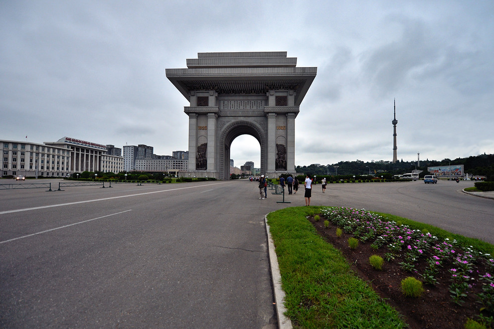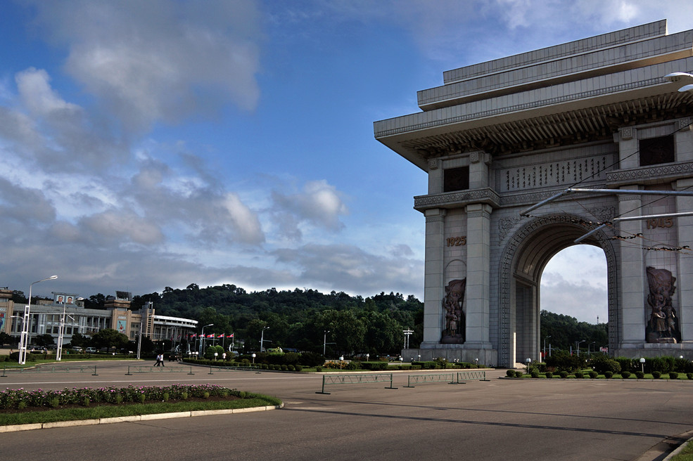 平壤凱旋門位于朝鮮民主主義人民共和國的首都平壤之“牡丹峰區(qū)”(MoranbongDistrict)的“牡丹峰大街”MoranbongStreet)及“凱旋大街”(KaesonStreet)的交界處,地處“牡丹峰”(MoranHill)的西麓,鄰近金日成體育館(KimIiShingStadium)及“凱旋青年公園”(KaesonYouthPark)。