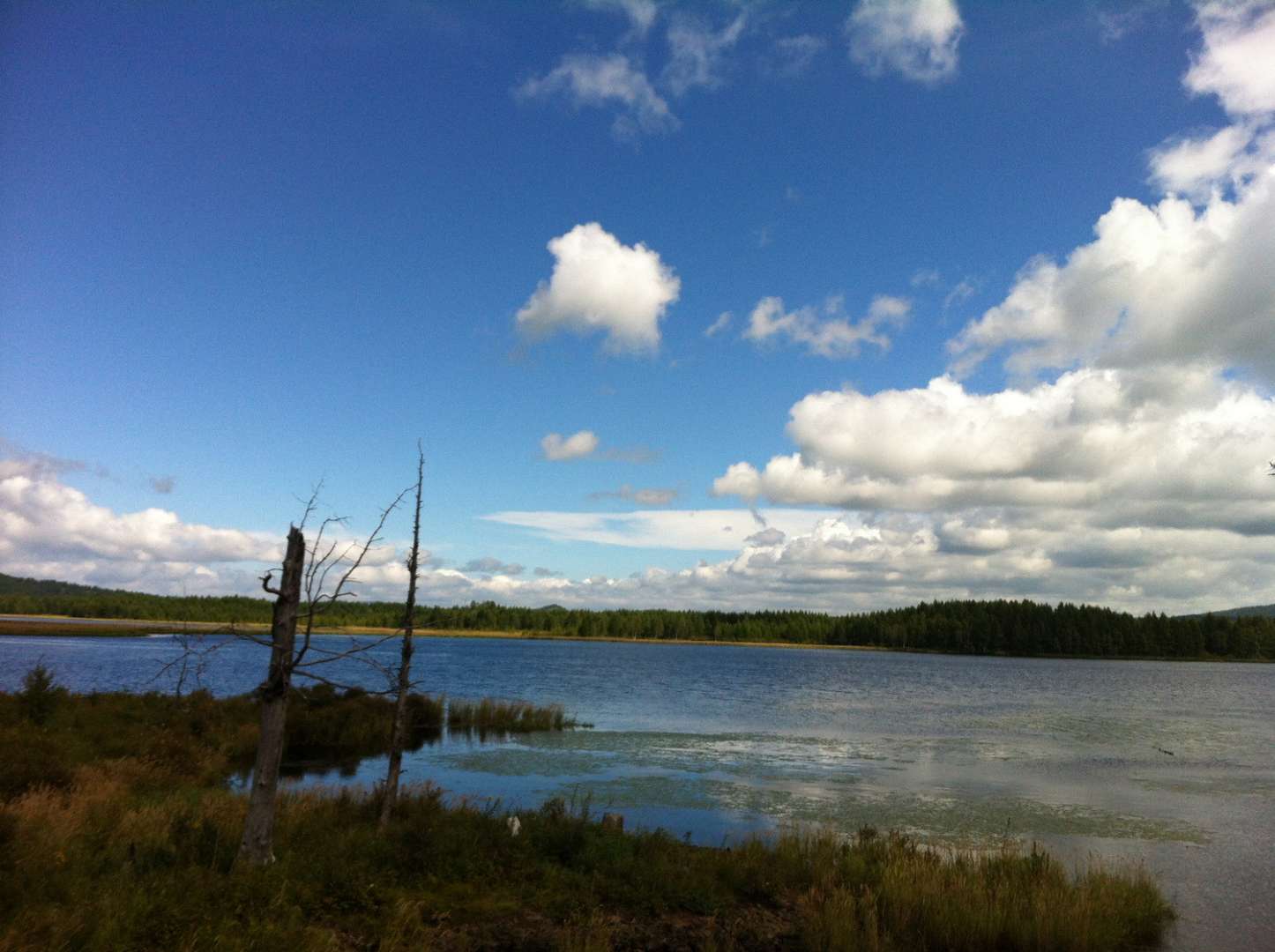 該湖狀呈L型,東南為進(jìn)水口,西南為出水口,上邊連著松葉湖,下邊銜著哈拉哈河,平均水深2.5米,最深處5米以上,為流動活水湖。