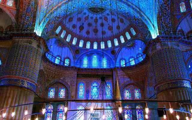 建造藍(lán)色清真寺的初衷是為了和阿亞索菲亞教堂相競爭,但是它實(shí)際上卻在規(guī)模和內(nèi)部空間的平衡方面已經(jīng)超過了阿亞索菲亞教堂,其面積達(dá)到了64×72平方米。