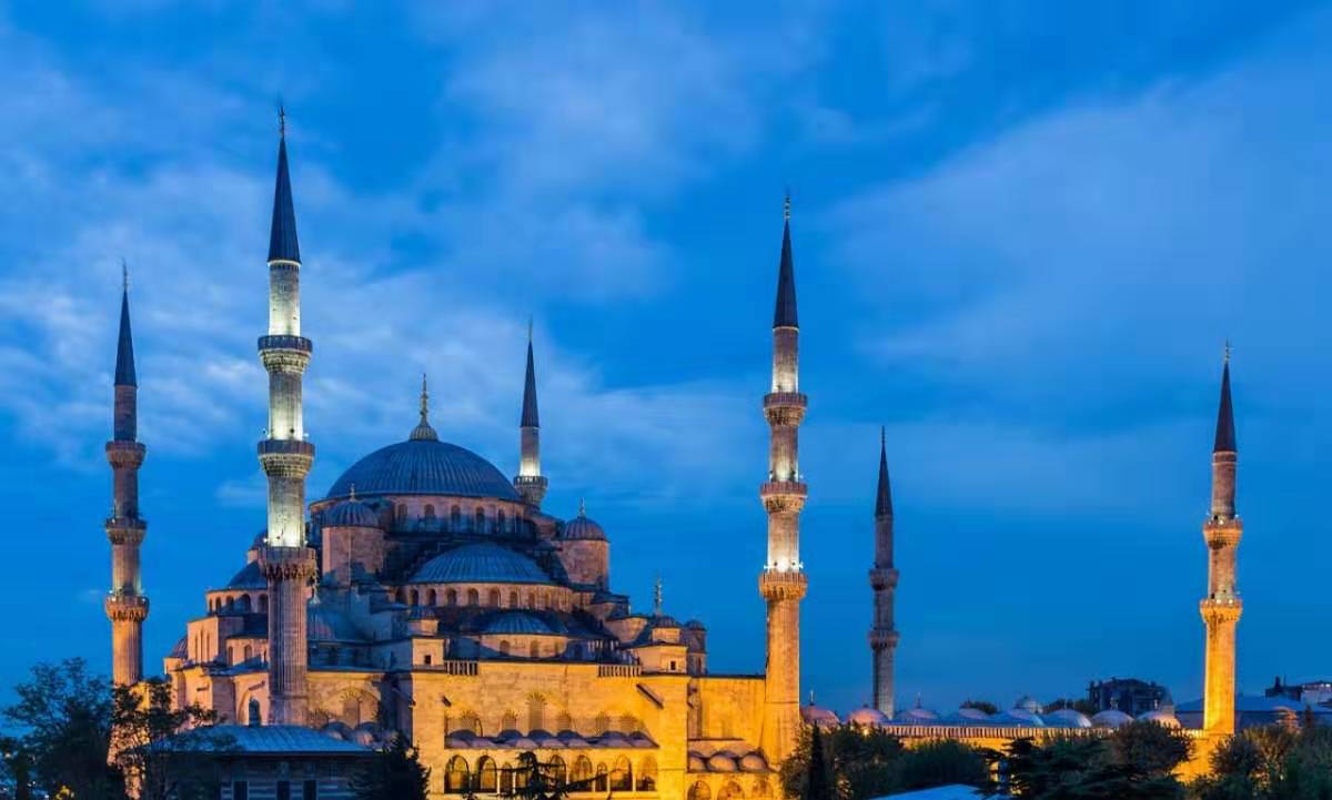 藍(lán)色清真寺,原名蘇丹艾哈邁德清真寺,土耳其著名清真寺之一,17世紀(jì)初由伊斯蘭世界著名古典建筑師錫南的得意門生Mehmet Aga設(shè)計(jì)建造,因清真寺內(nèi)墻壁全部用藍(lán)、白兩色的依茲尼克瓷磚裝飾故名,是伊斯坦布爾最重要的標(biāo)志性建筑之一。