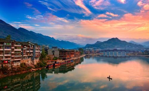 濯水古鎮(zhèn)位于重慶市黔江區(qū)東南角濯水鎮(zhèn)境內(nèi),地處烏江主要支流阿蓬江畔,距黔江主城26公里,渝懷鐵路、渝湘高速公路、國道319線穿境而過,距舟白機場26公里,交通便利,是國家AAAA級景區(qū)、國家級歷史區(qū)文化名鎮(zhèn)。是一個集土家吊腳樓群落、水運碼頭、商貿(mào)集鎮(zhèn)于一體的千年古鎮(zhèn)。