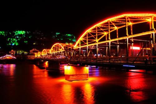 隨著時間的流逝,版權(quán)所有山東聊城聊之旅國際旅行社有限公司,轉(zhuǎn)載必究!蘭州市區(qū)已架起了10多座造型美觀、結(jié)構(gòu)新穎、工藝先進、氣勢不凡的鐵路公路橋,這座古老的黃河鐵橋已不是溝通黃河南北的唯一通道了。盡管如此,人們還是敬仰它、觀賞它,因為它就像一部史詩,飧刻著蘭州古往今來歷史的變遷,展示了蘭州人民燦爛藝術(shù)的畫卷。