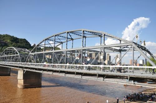 “黃啟炎傳,鐵漢秦章光隴坂;河清海晏,橋虹耀彩衛(wèi)金城。”這座古老的橋梁依然橫跨黃河之上,與白塔山相呼應(yīng)。“舉頭迎白塔,緩步過黃河。對岸兩山峙,中流意興多。”趙樸初的詩句頗能勾出人的游興。和諸多橋梁相比,中山橋的觀賞和紀(jì)念價值似乎比交通作用更有意義。中山橋原名蘭州黃河鐵橋,是黃河上修建最早的鐵橋,素有“天下黃河第一橋”的美稱。位于蘭州市區(qū)中心白塔山下,南接中山路、南濱河路,北連靖遠路、金城路,是蘭州市區(qū)重要交通樞紐工程。中山橋建成后,時為黃河上游和蘭州黃河兩岸唯一的橋梁,方便了兩岸經(jīng)濟生活,加強了蘭州與西北地區(qū)各省的政治.經(jīng)濟和文化交流。在舊中國,與濟南道口鐵橋、鄭州鐵橋同列為黃河上三大橋梁。1928年為紀(jì)念孫中山先生而改稱中山橋,沿用至今。