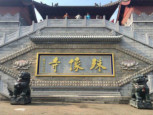 山門面南,面闊三楹,進深兩間,單檐歇山頂,內供護法神哼、哈二將。山門前左右置石獅一對,兩側設腰門。過門殿兩側擺鐘、鼓樓,均為面闊三楹,進深一間,單檐歇山。山門正北為天王殿,面闊五楹,進深兩間,單檐歇山。前后格封木壁板,中三間設歡門,稍間開歡窗,殿兩側置腰墻,界以一進院落,腰墻辟腰門與二進相通。天王殿北兩側為東、西配殿,東殿名饌香室,西殿名演梵堂。天王殿正北地勢增高,上多級大石階可登達月臺,月臺北起主殿會乘殿,面闊七楹,進深五間,重檐黃琉璃歇山頂,下檐施五踩單翹單昂斗拱,上檐施七踩單翹重昂斗拱。前后明、次間設菱花隔扇門,前檐梢盡問設檻窗,后封實墻。殿內奉主尊文殊菩薩(騎獅),兩側有觀音、普賢(騎象)。供桌前東西各置萬壽塔,八角三層楠木,今壽塔猶存,鎦金銅佛在姜桂題任熱河都統時期被盜。兩側墻壁置經櫥,藏滿文大藏經三部,日本帝國主義侵華時劫運一部,現存東京;一部流落西歐,現存巴黎圖書館;一部下落不明。殿內橫匾“會通三際”,條幅“發(fā)心為眾生緣深入善權菩薩果,現相如三世佛了分身住曼殊床”。版權所有山東聊城聊之旅國際旅行社有限公司,轉載必究!會乘殿前東、西兩側有配殿,東為指峰,西為面月。會乘殿北,順勢置假山,壘石穿洞,潛巖渡橋,溝壑縱橫,曲徑幽深,是五臺山的縮影。假山如朵朵祥云,載運一座高閣,名寶相閣,又名凈名普現,重檐八角,黃琉璃瓦頂綠剪邊,正東、西、南、北四面設門,四斜面設檻窗。閣內石制須彌座上有高11.6米的木雕文殊菩薩騎獅像,傳說是按乾隆容貌塑造。兩側有兩個力士像,各高3米。閣內橫額“凈名普現”。條幅“佛說是本師宏宣象教,天開此初地示現獅峰”。寶相閣前東、西有配殿各三間,東為云來,西為凈雪。登上第二層假山,正北有樓名清涼樓,又名相合臺懷,兩層,每層九間,樓內供文殊。一樓門額“妙五福德”。樓內條幅“地分臺麓示居國,座挹錘峰供養(yǎng)云”。清涼樓前兩側有配殿,面闊五楹,東曰吉輝,西曰慧喜,慧喜殿西有六角亭。凈雪殿西有一小院,正室三間,名香林室,室后設月門。室前東有方亭一座,西有小樓名倚云樓,兩層。皇帝到殊像寺上香時,皇后在此梳妝,故又名梳妝樓。殊像寺內原有一口大鍋,直徑2.41米,高2米,壁厚6厘米,由88塊銅塊鑄接而成,重約5噸,用18根鐵柱支撐。平時儲水防火,每逢臘月初八,該廟喇嘛就用此鍋煮“臘八粥”,承德各廟的喇嘛都到這里吃粥承恩。