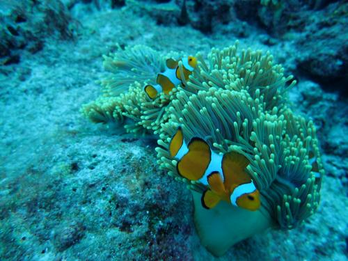 涉足觀魚:即使沒有受過潛水訓(xùn)練,也絕對可以享受潛水觀魚的樂趣。戴上面罩,撲在海面上向下看,近距離欣賞美麗的珊瑚,五顏六色的熱帶魚從身邊游過,尤其是紅色的大魚,很讓人驚奇,30米外便有如懸崖般的落差,但這里也是魚兒最多的地方。在陽光的照射下,海底世界美得如夢如幻。一會兒,一大群黑色的魚群游過來,不一會兒又有一大群白魚從身邊穿過。運(yùn)氣好的話,可見到小鯊魚和魔鬼魚。