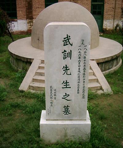 1896年6月4日(光緒22年4月23日巳時),武訓(xùn)先生在臨清御史巷義學(xué)房檐,側(cè)身而臥,聽著孩子的瑯瑯讀書聲,面露微笑,離開了人間,享年59歲。遵照遺囑,由其侄克信引薄柩葬于此地,當(dāng)時為土丘。1937年,由何思源監(jiān)工,重修武墓,改為水泥丘。1966年9月,“造反派”扒墳掘墓,碎尸粉骨。據(jù)目擊者回憶武訓(xùn)尸骨較長,沒有任何陪葬平,頭骨上有一縷頭發(fā)。1989年4月,武訓(xùn)紀(jì)念館籌建小組按原方位與形狀重新修建,墓碑由徐云北題。