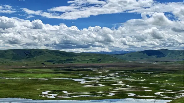 郭莽濕地位于甘肅省碌曲縣尕海鄉(xiāng)213國道旁,海潑3562米,是黃河最大支流洮河的發(fā)源地和水源涵養(yǎng)地,在黃河流域生態(tài)涵養(yǎng)和水源保護中具有重要意義。郭莽濕地是一個開放式免費景點,就在公路邊。草地上一條500多米長的木棧道通往觀景臺,站在觀景臺上,眼前彎曲的小河,傍水而居的藏族小村莊,風輕日朗,白云朵朵,綠草如茵經(jīng)幡飄揚,好似一幅美麗的生態(tài)畫卷!
