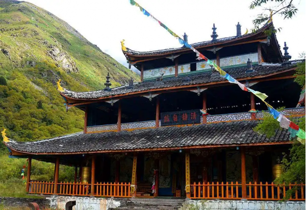 黃龍中寺占地約500平方米,黃龍中寺始建于明朝,屬藏傳佛教苯教寺廟。建筑古樸雄偉,殿內塑像做工精細,體現(xiàn)了黃龍景區(qū)內藏漢民族宗教相互融合的文化特點。中寺位于爭艷池和五彩之間,紅松等針葉林滿山,杜鵑林等植物遍地,環(huán)境幽雅。