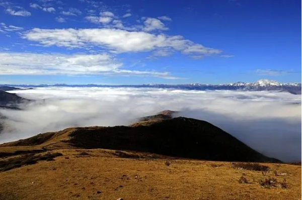 雪山梁以雪峰、群山及云海為主要景觀內容,兼以觀賞垂直分布之高山植物群落和參觀藏族村寨,面積100余平方公里。
