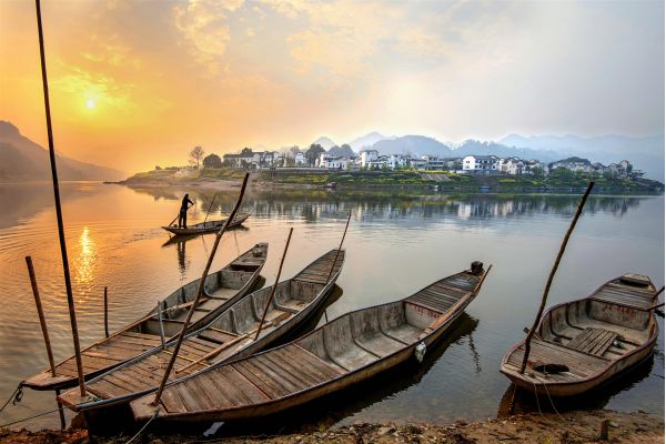 新安江山水畫(huà)廊風(fēng)景區(qū)位于安徽省黃山市歙縣深渡鎮(zhèn),全長(zhǎng)約百里,景區(qū)以中國(guó)獨(dú)特的徽文化與自然風(fēng)光、古村落的結(jié)合著稱(chēng)。兩岸生態(tài)環(huán)境呈現(xiàn)“高山林、中山茶、低山果、水中魚(yú)”立體生態(tài)格局,徽派古民居點(diǎn)綴在青山綠水之間,素有“東方多瑙河之稱(chēng)”的新安江穿行而過(guò)。一年四季,景色各異,似一幅流動(dòng)的山水畫(huà)卷,故稱(chēng)之為新安江百里畫(huà)廊。