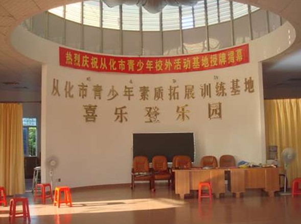 從化市喜樂登拓展訓(xùn)練中心(青少年素質(zhì)拓展訓(xùn)練基地)座落在從化城郊紅旗村(距廣州約70公里,離從化市中心約15分鐘車程),占地350多畝。基地種有優(yōu)質(zhì)荔枝、龍眼、楊梅、黃皮等20多種果樹,各種本地特色農(nóng)作物(紫心蕃薯、香芋、甜玉米等)以及上百種綠化植物,保持著濃郁的鄉(xiāng)村氣息。護(hù)城河邊、竹樓亭閣、果樹田園、風(fēng)光無限、是一個(gè)集科普教育、果園旅游,配合青少年素質(zhì)實(shí)踐教育為一體的實(shí)踐教育基地。