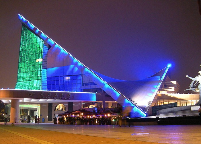 星海音樂廳位于廣州二沙島,造型奇特的外觀,富于現代感,尤如江邊欲飛的一只天鵝,與藍天碧水渾然一體,形成一道瑰麗的風景線。這座以人民音樂家冼星海的名字命名的音樂廳,占地1.4萬平方米,建筑面積1. 8萬平方米,設有1500座位的交響樂演奏大廳、460座位的室內樂演奏廳,100 座位的視聽欣賞室,和4800平方米的音樂文化廣場。整體建筑為雙曲拋物面鋼筋混凝土殼體,室內不吊天花板,做到建筑空間與聲學空間融為一體。星海音樂廳總投資達2.5億元,是我國目前規(guī)模最大,設備最先進,功能完備,具有國際水平的音樂廳。