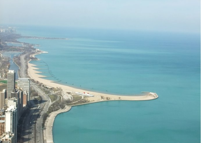 密歇根湖也叫密執(zhí)安湖,是北美五大湖中面積居第三位,唯一全部屬于美國的湖泊。湖北部與休倫湖相通,南北長517公里,最寬處190公里,湖盆面積近12萬平方公里,水域面積57757平方公里,湖面海拔177米,最深處281米,平均水深84米,湖水蓄積量4875立方公里,湖岸線長2100公里。有約100條小河注入其中,北端多島嶼,以比弗島為最大。面積5.8萬平方公里。最深282米,深度由北向南漸減。湖面海拔177米,與休倫湖相當(dāng),借麥基納克水道相連。與密西西比河則借伊利諾伊—密歇根運河相通。