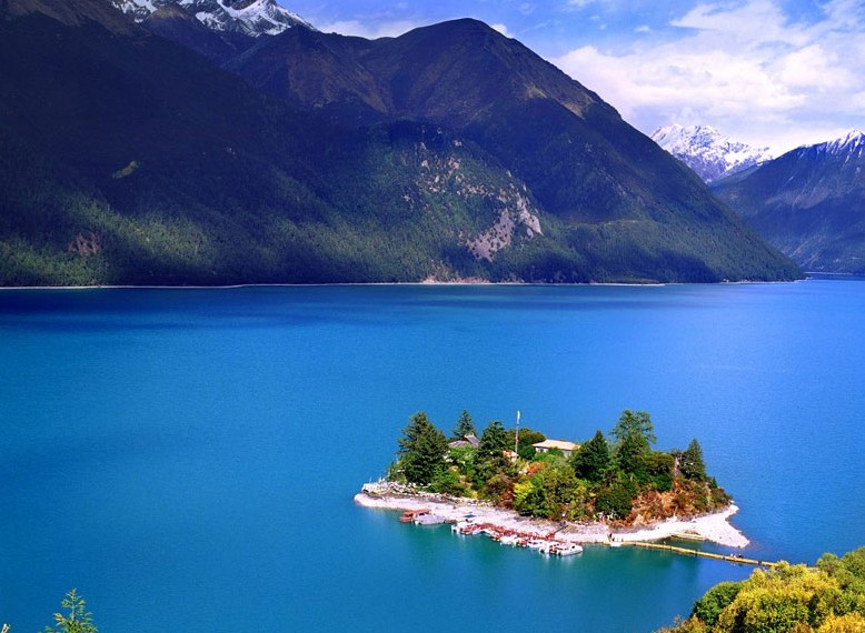 錯(cuò)高在藏語中意為綠色的水,也稱為"巴松錯(cuò)"。它距工布江達(dá)縣50多公里,是紅教的著名神湖。湖形狀如鑲嵌在高峽深谷中的一輪新月,長約12公里,湖寬幾百至數(shù)千米不等,最深處60多米,總面積6千多畝。湖水清澈見底,四周雪山倒映其中,黃鴨沙鷗白鶴等飛禽浮游湖面,湖中則是游魚如織,分外寧靜。湖心扎西島上有錯(cuò)宗工巴寺,建于唐代末年。島上的礁石均雕刻成了別致的動(dòng)物形象以及佛像。錯(cuò)宗寺為土木結(jié)構(gòu),上下兩層,殿供強(qiáng)巴佛千手觀音和金童玉女。寺南有一株桃和松的連理樹,春天時(shí)桃花與青松相映,煞是好看。錯(cuò)宗工巴寺寺僧與信從們都乘獨(dú)木舟往來。每值春季,湖四周群花爛漫,雪峰陳列并倒影湖中,景色宜人至極。湖西北還有一5平方米大的巨石,大石中心有一可供一人鉆過的洞,據(jù)說能鉆此洞可消災(zāi)除病。作為紅教著名的神糊。每年來此轉(zhuǎn)經(jīng)觀湖的群從非常多。