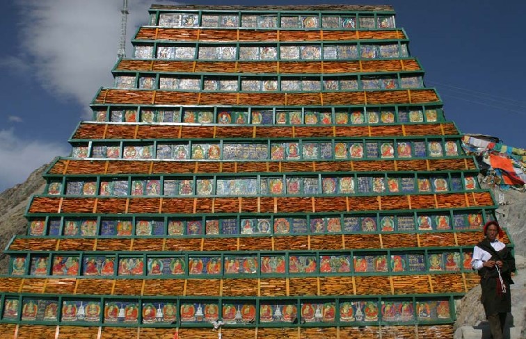 藥王山后面有拉薩十分著名的萬佛墻,附近有很多刻瑪尼石的人家。從西藏旅游局東面的一條小路一直往南走就可找到。