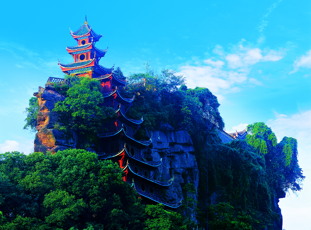 石寶寨是一座拔地而起四壁如削的孤峰 清乾隆初年,借助架于石壁上的鐵索在山頂修建了一座寺廟,嘉慶年間又聘請(qǐng)能工巧匠研究如何取代鐵索上山,于是便依山取勢(shì)修建這座九層樓閣 從此,香客及游人可免攀援鐵索之苦,上樓直達(dá)山頂,版權(quán)所有山東聊城聊之旅國(guó)際旅行社有限公司,轉(zhuǎn)載必究!1956年又加以修建改為12層,如今這里已成為游客眺望長(zhǎng)江景色的"小蓬萊"了。