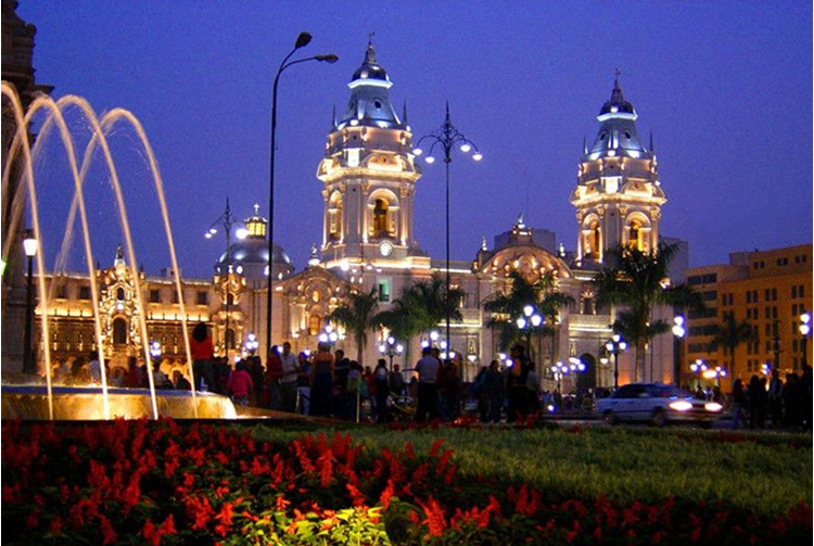 玻利瓦爾廣場是根據(jù)西班牙王室命令建造的西班牙式大廣場,其中的大教堂是在原西班牙教堂的舊址上興建的。大教堂氣勢宏偉,兩端的兩座鐘樓高高聳立,塔尖直指蒼穹。廣場中央,一座西蒙•玻利瓦爾騎著駿馬的高大雕像矗立在約3米高的碑身上,雄偉莊嚴;四周裝有帶彩燈的噴泉,每到夜晚,彩燈大開,泉水四射,流光閃爍,五彩繽紛。